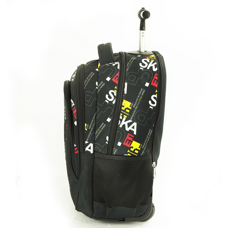 - Ενισχυμένοι ιμάντες πλάτης με αντανακλαστικά ρέλια που κρύβονται σε ειδική θήκη με φερμουάρ όταν η τσάντα χρησιμοποιείται σαν τρόλεϊ