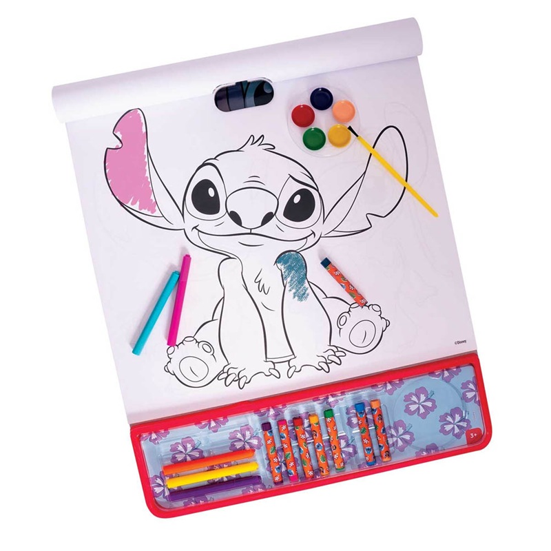Το Giga Block 5 σε1 βοηθάει το παιδί να ζωγραφίζει, να διακοσμεί, να χρωματίζει, να βάφει και να δημιουργεί. Περιέχει 6 ξυλομπογιές, 8 κηρομπογιές, 6 νερομπογιές, αυτοκόλλητα και προτυπωμένα φύλλα σχεδιασμού με τον αγαπημένο Stitch.
