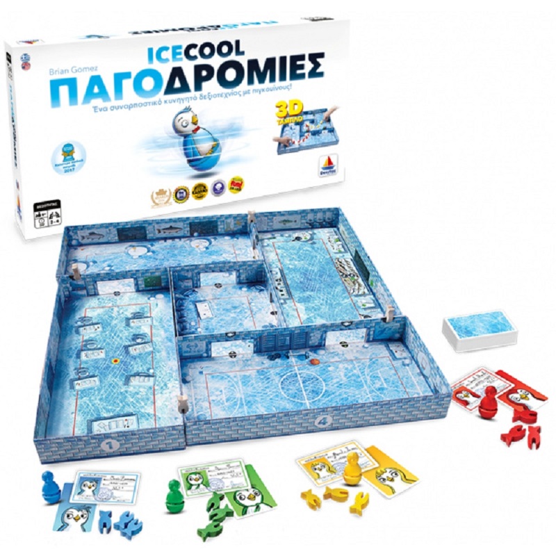 Το επιτραπέζιο περιέχει :53 κάρτες , 16 ξύλινες μάρκες , 5 χάρτινα κουτιά , 4 πλαστικούς πιγκουίνους και οδηγίες χρήσης .