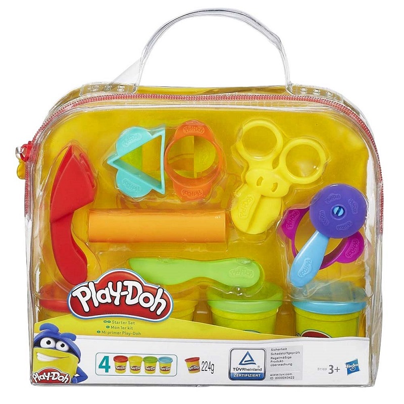 Όλα τα βασικά εργαλεία και 4 βαζάκια (224γρ) πλαστελίνης σε διάφανη πλαστική τσαντούλα. Περιέχουν φυσικά συστατικά, μη τοξικά (σιτάλευρο) που δεν βλάπτουν τα παιδιά ακόμα και αν το φάνε. Το ιδανικό σετ για τις πρώτες του δημιουργίες Play-Doh.