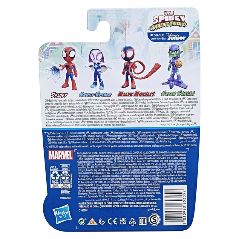 Ήρθε η ώρα του Spidey ! Η σειρά Spidey and His Amazing Friends της Marvel παρακολουθεί τις περιπέτειες του Υπερήρωα Spidey και όλων των ηρωικών φίλων του! Ο Spidey, η Ghost-Spider, και ο Miles Morales διαθέτουν όλοι υπερδυνάμεις αράχνης: αίσθηση όπως η αράχνη, υπερδύναμη, ικανότητα να σκαρφαλώνουν στους τοίχους και πολλά περισσότερα! Καθένας τους φέρνει κάτι μοναδικό στις περιπέτειές τους ενάντια στο έγκλημα και είναι πιο δυνατοί όταν συνεργάζονται στην απίθανη Spider Team! Όμως, ακόμα και η καλύτερη ομάδα χρειάζεται λίγη βοήθεια — γι’ αυτό είναι καλό να έχει κανείς συμμάχους όπως οι Ms. Marvel,ο Black Panther και ο Hulk! Είναι δύσκολο να είναι κανείς Υπερήρωας, αλλά βοηθάει να έχεις τέτοιους Φανταστικούς Φίλους! Η Ομάδα του Spidey τα κάνει όλα – σταματά τους κακούς και σκαρφαλώνει στους τοίχους! Περιλαμβάνει φιγούρα και αξεσουάρ. Κλίμακα φιγούρας: 4 ίντσες.