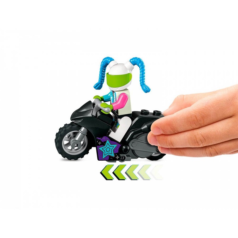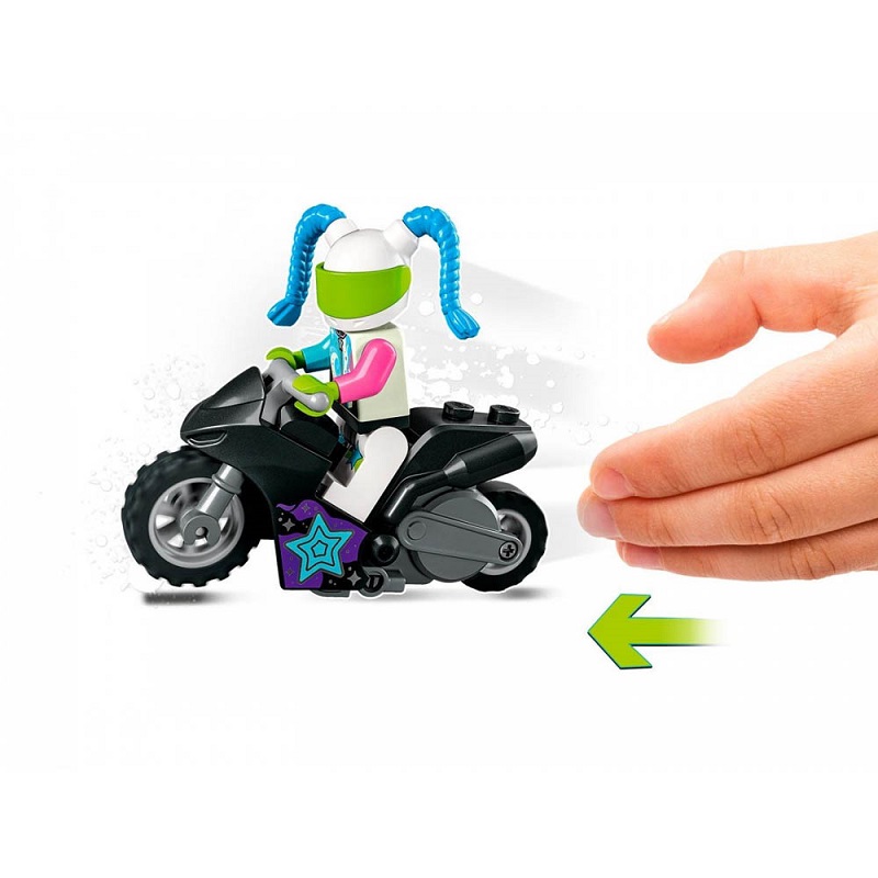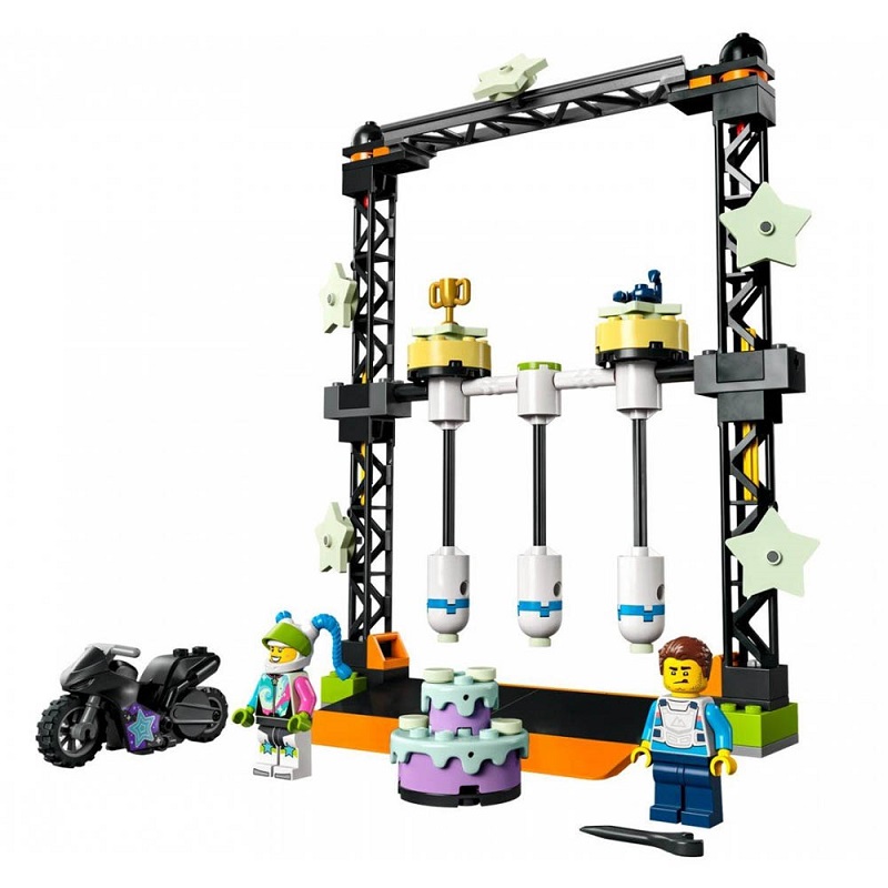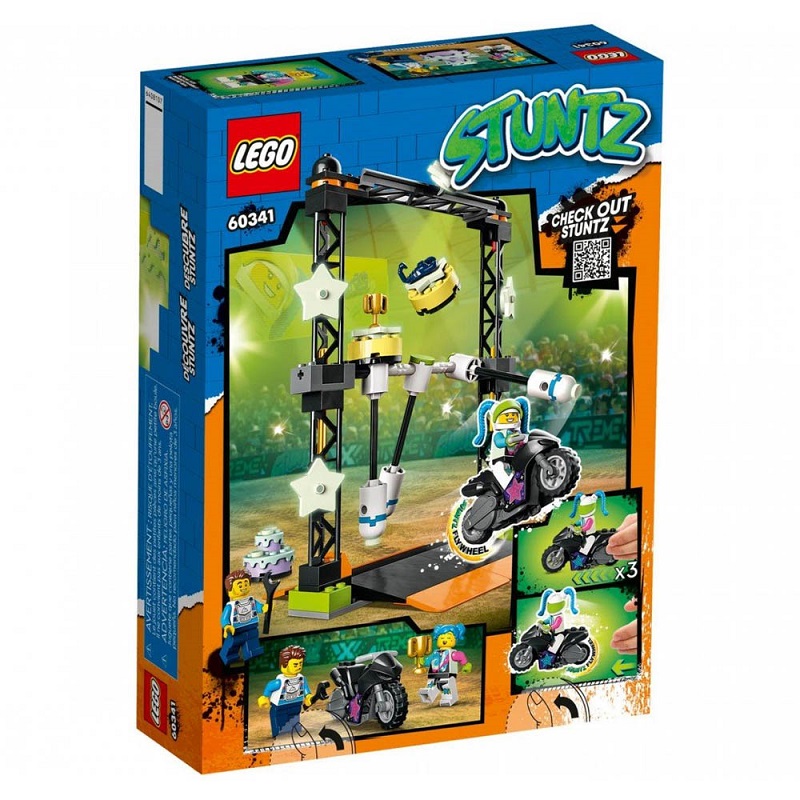 Τα παιδιά που τους αρέσει να διαγωνίζονται θα λατρέψουν αυτό το σετ παιχνιδιών LEGO City The Knockdown Stunt Challenge με στοιχεία που λάμπουν στο σκοτάδι. Τα παιδιά ξεκινούν τη μοτοσυκλέτα με σφόνδυλο για να χτυπήσουν μια κολόνα και να κερδίσουν ένα βραβείο. Και με 2 δημοφιλείς χαρακτήρες της LEGO City TV, το σκηνικό έχει ρυθμιστεί για διασκεδαστικό παιχνίδι ρόλων. Συνδυάστε αυτό το σετ με άλλα από τη σειρά LEGO City Stuntz για περισσότερη δράση κόλπο.