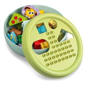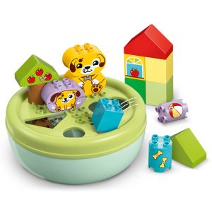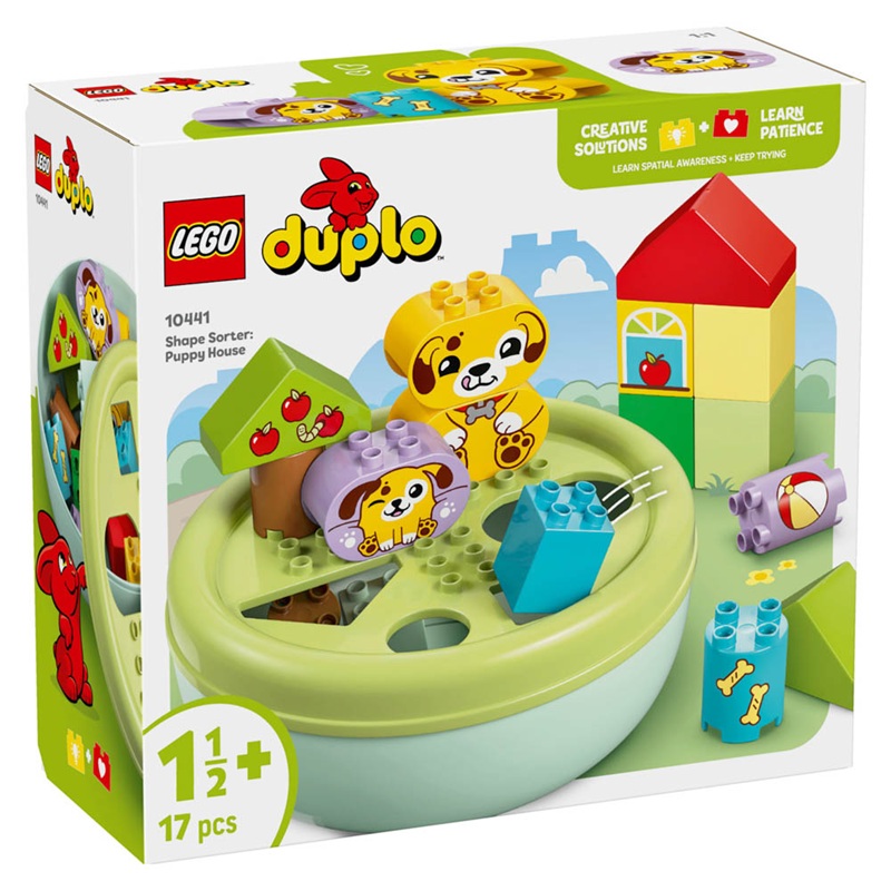 Δώστε στα νήπια που λατρεύουν τα κουτάβια δύο εναλλακτικές για παιχνίδι με το LEGO Duplo Shape Sorter: Puppy House (10441). Αυτό το παιχνίδι λεπτών κινητικών δεξιοτήτων, για νήπια ηλικίας 18 μηνών και άνω, προσφέρει χαρούμενη μάθηση για τα σχήματα και την επίλυση προβλημάτων καθώς τα παιδιά προσχολικής ηλικίας χρησιμοποιούν τα τουβλάκια για να κατασκευάσουν ένα μέρος όπου θα παίζουν τα κουτάβια τους, και μετά βάζουν τα σχήματα μέσα στις τρύπες στο καπάκι. Οι γονείς δείχνουν τα διάφορα σχήματα του σετ στα νήπια καθώς εκείνα τα χρησιμοποιούν για να κατασκευάσουν δέντρα, φιγούρες σκύλων, ακόμα κι ένα σπίτι. Μετά, μπορούν να απολαύσουν δημιουργικό παιχνίδι ρόλων με τα χαριτωμένα τους σκυλάκια LEGO® DUPLO®, πετώντας τους μια μπάλα και δίνοντάς τους ένα κόκαλο. Όταν το ευρηματικό παιχνίδι τελειώσει, αρχίζει η διασκέδαση με την ταξινόμηση σχημάτων. Θα μάθουν υπομονή καθώς συγκεντρώνονται και βρίσκουν ποιο είναι το σωστό σχήμα για κάθε τρύπα. Κι αν κάνουν λάθος, μαθαίνουν επιμονή και συντονισμό χεριών-ματιών καθώς προσπαθούν ξανά να βρουν τη σωστή τρύπα για το συγκεκριμένο σχήμα. Η συσκευασία περιέχει 17 κομμάτια.