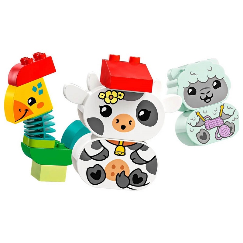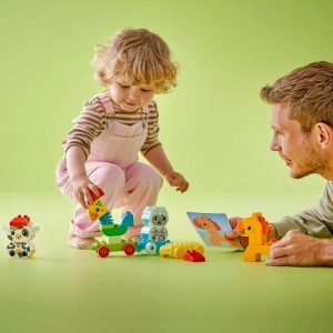 Επιβιβαστείτε για πολλές ώρες δημιουργικής αντιστοίχισης χρωμάτων με το διασκεδαστικό LEGO® DUPLO® My First Animal Train. Τα νήπια αποφασίζουν ποιο ζώο θα καθίσει σε ποιο βαγόνι, ανάλογα με το χρώμα του, και κατασκευάζουν και ανακατασκευάζουν τα χαριτωμένα ζωάκια της φάρμας με όποιον τρόπο θέλουν. Θα αναπτύξουν σημαντικές κινητικές δεξιότητες καθώς συνδέουν τα βαγόνια και μετακινούν τον εύκαμπτο λαιμό του κόκορα. Η συσκευασία περιέχει 19 κομμάτια.