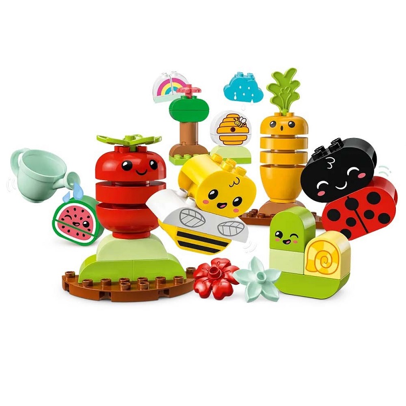 Αυτό το σετ είναι γεμάτο λειτουργίες που βοηθούν τους γονείς να ξεκινήσουν συζητήσεις για το τι φυτρώνει στον κήπο και εισάγει τα παιδιά στην ιδέα ενός οικοσυστήματος. Υπάρχουν πολλά φρούτα και λαχανικά για να εξερευνήσει ένα παιδί, όπως παιχνίδια με ντομάτα, καρότο και καρπούζι, δέντρα, λουλούδια, άγρια ζωή και τούβλα για τον καιρό. Όταν τελειώσει το παιχνίδι, όλα συσκευάζονται όμορφα στο τουβλό- κουτί LEGO DUPLO.