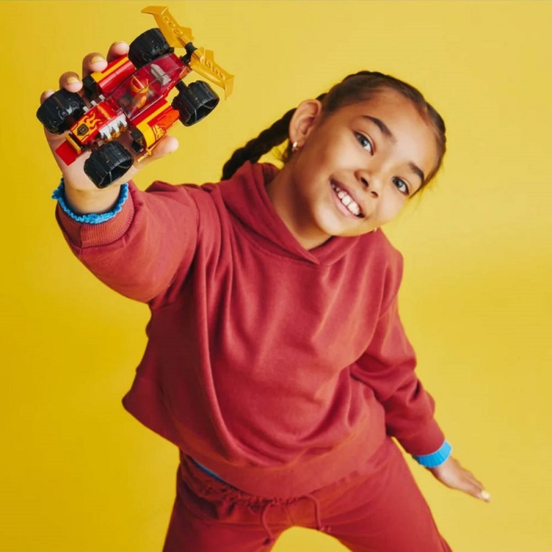 Βοηθήστε τον Kai να μεταμορφώσει το σούπερ cool Ninja Race Car του για γρήγορες, συναρπαστικές περιπέτειες στην NINJAGO® City! Μπείτε στο κόκπιτ και κάντε μια βόλτα με το εκτός δρόμου όχημα με τα mega λάστιχα και τη χρυσή αεροτομή των φτερών. Όταν σταματήσετε, αλλάξτε τους τροχούς και αναβαθμίστε το σε ένα ακόμα πιο ισχυρό και γρήγορο αγωνιστικό αυτοκίνητο δρόμου, έτοιμο για συναρπαστικές αναμετρήσεις! Μπορείς να βοηθήσεις τον Κάι να φτάσει στην τελική ταχύτητα και να θριαμβεύσει; Η συσκευασία περιέχει 94 κομμάτια.