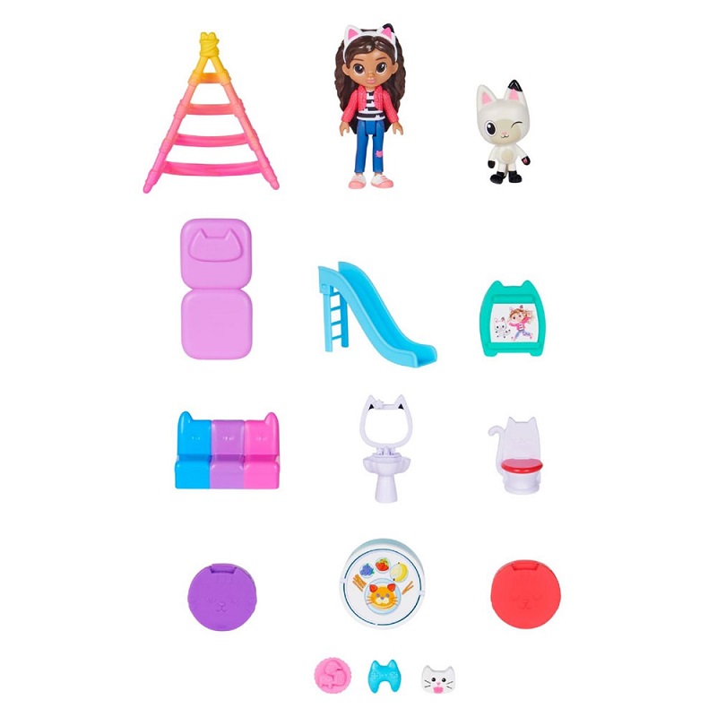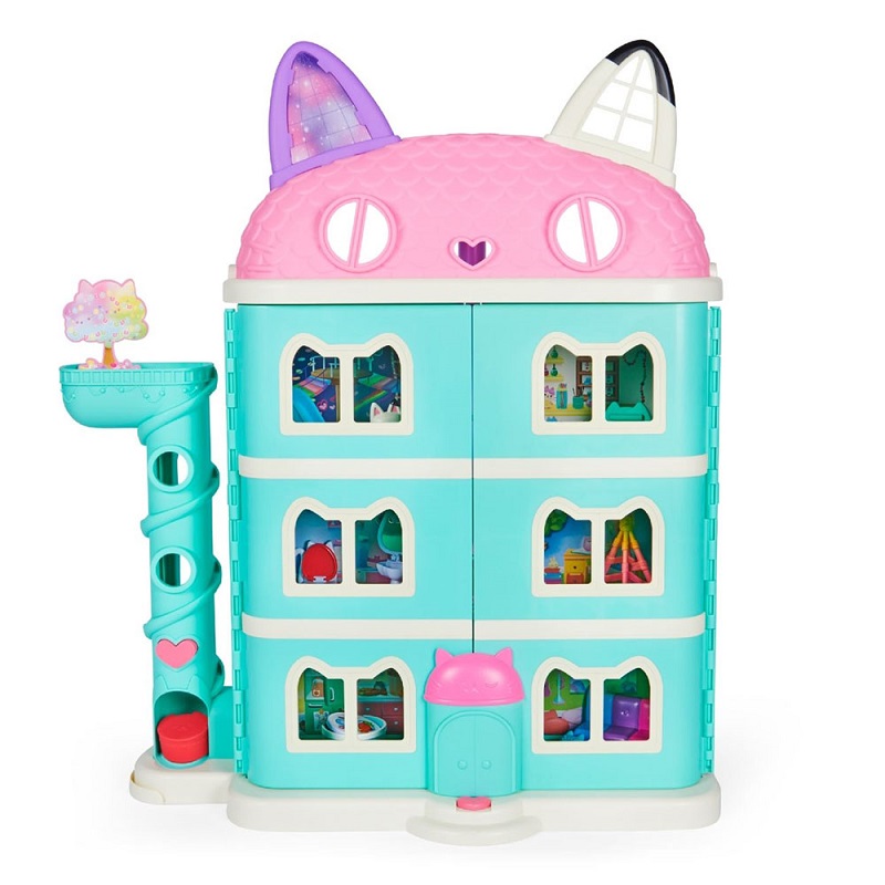 Παίξε στο δικό σου κουκλόσπιτο με το Gabby’s Dollhouse Κουκλόσπιτο! Με ύψος πάνω από 60 εκ., αυτό το φανταστικό παιδικό κουκλόσπιτο είναι γεμάτο εκπλήξεις που μπορείς να εξερευνήσεις, όπως έναν πύργο για τα δέματα από το Κουκλόσπιτο, γατα-νσέρ που λειτουργεί, ηχητικά εφέ και πολλά-πολλά άλλα! Με τη συλλεκτική φιγούρα Γκάμπι 8,9 εκ., τη φιγούρα Πάντι, έπιπλα για όλα τα δωμάτια, τρία αξεσουάρ και δύο Γατίσια Γατοκουτιά, ξεκινάς το παιχνίδι αμέσως! Με τόσα δωμάτια και γατοεκπλήξεις να ανακαλύψεις, φτιάχνεις ατέλειωτες περιπέτειες με την Γκάμπι και τον αγαπημένο της Πάντι.