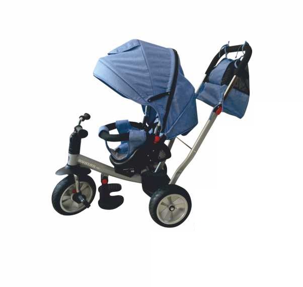 Νέο ανατομικό και ενισχυμένο τρίκυκλο ποδηλατάκι! Ιδανικό για το μικρό σας από τις πρώτες του βολτούλες. Χάρη στη δυνατότητα να κλειδώνει το τιμόνι και η μπροστινή ρόδα, μπορείτε να καθοδηγείτε το μικρό σας. Το ποδηλατάκι διαθέτει ενισχυμένο και προσαρμόσιμο χερούλι καθοδήγησης. Οι ρόδες είναι από υλικό rubber με εσωτερικό αέρα, για αποτελεσματικότερη απορρόφηση κραδασμών. Διαθέτει και κουμπί ΣΤΟΠ για τις πίσω ρόδες. Η σέλα προσαρμόζεται ανάλογα με το ύψος του μικρού σας, ενώ το κάθισμα μπορεί να ξαπλώσει σε 7 ζώνες και να περιστραφεί 360 μοίρες, επίσης περιλαμβάνει ενίσχυση για ανατομικό κάθισμα και ζώνη ασφαλείας. Η κουκούλα είναι ενισχυμένη και διαθέτει δύο σειρές από δίχτυ για σωστό εξαερισμό αλλά για να κοιτάτε το μικρό σας κατά τις βολτούλες σας. Όσο το μικρό σας μεγαλώνει το τιμόνι και η ρόδα μπορούν να ξεκλειδώσουν για να το δείτε να κάνει τις πρώτες του βόλτες μόνο του! Διαθέσιμο σε δύο χρώματα μπλε και γκρι.