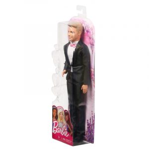Αυτός ο όμορφος γαμπρός είναι έτοιμος να πει «Δέχομαι»! Τα κορίτσια φτιάχνουν μοναδικές ιστορίες με τον Κεν γαμπρό που φοράει ένα μαύρο σμόκιν με λευκό πουκάμισο και γυαλιστερά πέτα. Τα μαύρα παπούτσια ολοκληρώνουν την εντυπωσιακή του εμφάνιση και προσθέτουν μία μοντέρνα πινελιά που ταιριάζει με την Νύφη (πωλείται ξεχωριστά). Περιλαμβάνεται κούκλα Ken με ρούχα και αξεσουάρ.