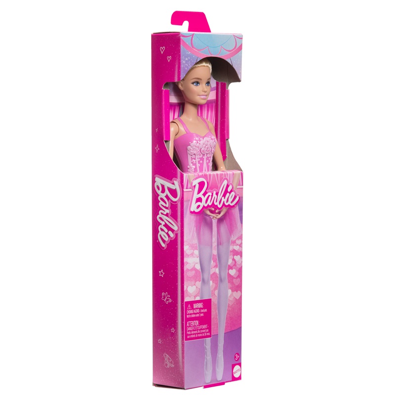 Ανεβείτε στη σκηνή με τις Barbie Μπαλαρίνες! Με κλασική εμφάνιση μπαλαρίνας, κάθε κούκλα φοράει κορμάκι με σχέδια και αφαιρούμενη φούστα μπαλαρίνας. Ο ψηλός κότσος ολοκληρώνει την εμφάνισή τους. Αυτές οι μπαλαρίνες είναι έτοιμες να ανέβουν στη σκηνή και να κλέψουν την παράσταση! Τα παιδιά ηλικίας 3 ετών και άνω μπορούν να κάνουν συλλογή με όλες τις μπαλαρίνες. Κάθε κούκλα πωλείται ξεχωριστά, ανάλογα με τη διαθεσιμότητα. Οι κούκλες δεν μπορούν να σταθούν όρθιες μόνες τους. Τα χρώματα και τα σχέδια μπορεί να διαφέρουν.
