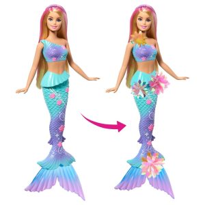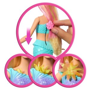 Διασκεδάστε με την κούκλα Barbie Flower Magic Mermaid! Σύρετε το μοχλό στην πλάτη της για να δείτε λουλούδια να «ανθίζουν» μαγικά από το μπούστο της μέχρι την ουρά της, ξανά και ξανά! Με τα ιριδίζοντα λουλούδια της, τα πτερύγια της σε χρώμα ombre και το αξεσουάρ headband με μαργαριτάρια στα υπέροχα μακριά ξανθά μαλλιά της με ροζ ανταύγειες, αυτή η κούκλα Barbie γοργόνα είναι τόσο μαγευτική. Η κούκλα δεν μπορεί να σταθεί ή να κολυμπήσει μόνη της. Τα χρώματα και οι διακοσμήσεις ενδέχεται να διαφέρουν.