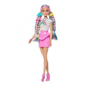 Οι κούκλες Barbie Rainbow Sparkle Hair εμπνέουν τη φαντασία και τη δημιουργικότητα μέσα από παιχνίδι styling και αφήγησης, χάρη στα μακριά, φανταστικά μαλλιά τους και τα 12 αξεσουάρ διαμόρφωσης. Τα παιδιά μπορούν να προσθέσουν λάμψη στα χτενίσματα με τη χτένα με γκλίτερ και να ολοκληρώσουν κάθε πολύχρωμο look με κλιπ, εργαλεία styling και επιπλέον αξεσουάρ μαλλιών. Το παιχνίδι ενισχύει την έκφραση, τη δημιουργικότητα και τις ατελείωτες ιστορίες ρόλων. Κάθε κούκλα πωλείται ξεχωριστά και ανάλογα με τη διαθεσιμότητα. Η κούκλα δεν μπορεί να σταθεί όρθια από μόνη της. Τα χρώματα και τα σχέδια μπορεί να διαφέρουν.