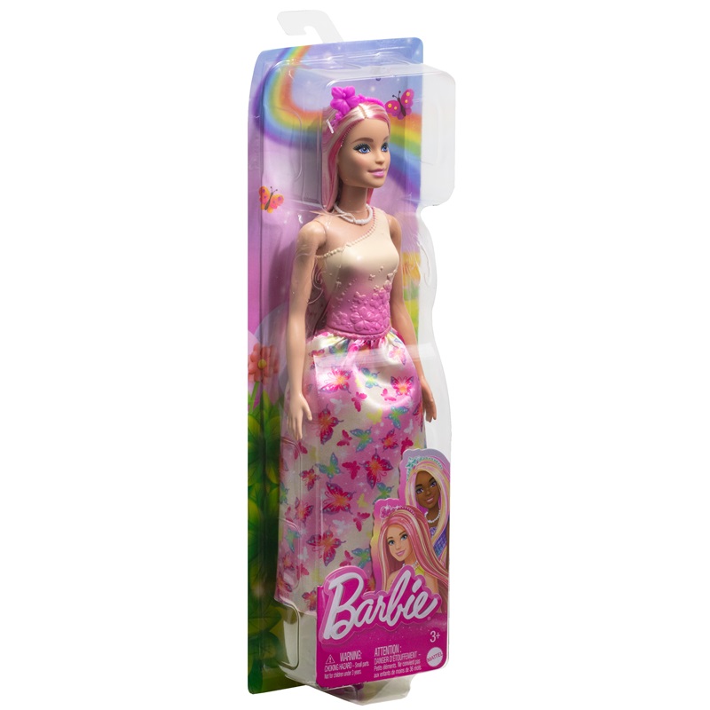 Εξερευνήστε μία χώρα γεμάτη μαγεία και περιπέτεια με αυτή την υπέροχη συλλογή από κούκλες Barbie Πριγκίπισσες! Κάθε κούκλα έχει μαλλιά σε ροζ και ξανθιά απόχρωση και φοράει ένα όμπρε κορμάκι με υπέροχες λεπτομέρειες και ασορτί φούστα με σχέδια πεταλούδες. Συνοδεύεται από πολύχρωμα αξεσουάρ, όπως στέκα με λουλούδι, κολιέ και γόβες, για διασκεδαστικά παιχνίδια μόδας!
