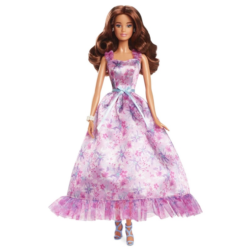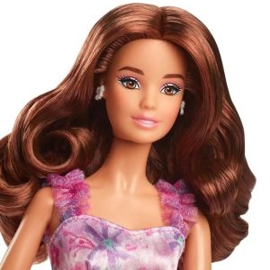 Χρόνια πολλά από την Barbie! Η Barbie Xαρούμενα Γενέθλια γιορτάζει μαζί σας ντυμένη εορταστικά με ένα ρομαντικό σατέν φόρεμα γεμάτο λουλούδια. Ένα υπέροχο δώρο για μία πολύ σημαντική ημέρα του χρόνου! Η συσκευασία έχει χώρο για να γράψετε την ευχή σας, κάνοντας το δώρο σας ακόμα πιο προσωπικό. Η Barbie εύχεται να είναι ένα γούρι που θα βοηθήσει να πραγματοποιηθούν όλες οι ευχές των γενεθλίων! Η κούκλα Barbie δεν μπορεί να σταθεί όρθια από μόνη της. Τα χρώματα και τα σχέδια μπορεί να διαφέρουν.